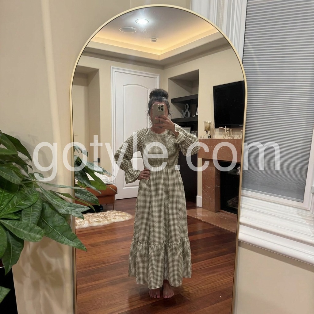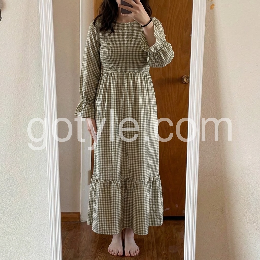 Effortlessly chic and versatile, our Green Check Round Neck Maxi Dress is a must-have for your wardrobe. The classic round neck design and green check print add a touch of sophistication, while the flowy maxi length ensures comfort and style. Perfect for any occasion, this dress is sure to turn heads.