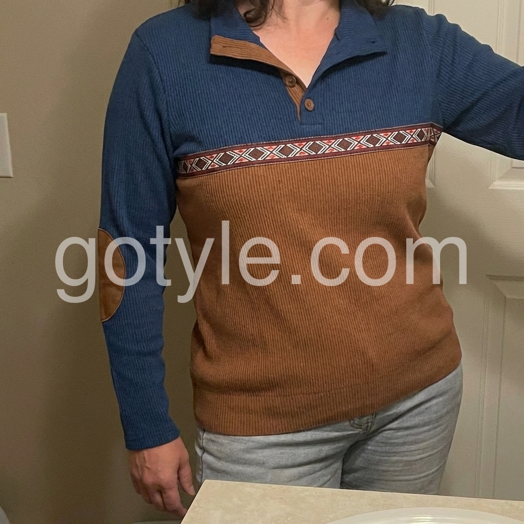 Elevate your casual wardrobe with this sophisticated brown long sleeve top, featuring contrasting color block panels that add visual interest and dimension. The signature elbow patches deliver timeless preppy appeal while reinforcing high-wear areas for enhanced durability. Crafted for versatility, this piece transitions seamlessly from weekend errands to relaxed office settings. The structured long sleeves provide coverage and warmth, making it an ideal layering piece for transitional seasons. A refined choice for those who appreciate understated style with functional design details.