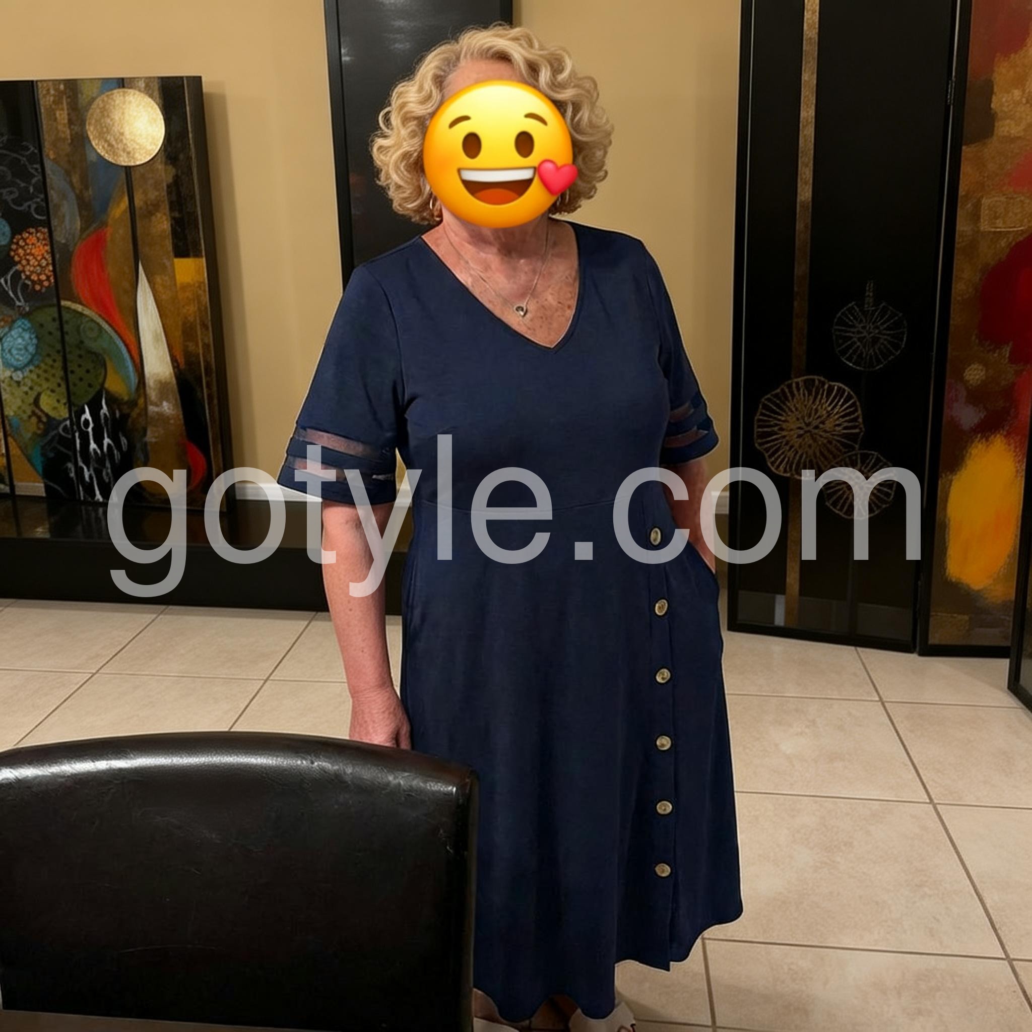 I absolutely love this dress! The navy blue color is so rich, and the pockets are a total game changer. It fits perfectly and is incredibly flattering around the waist.