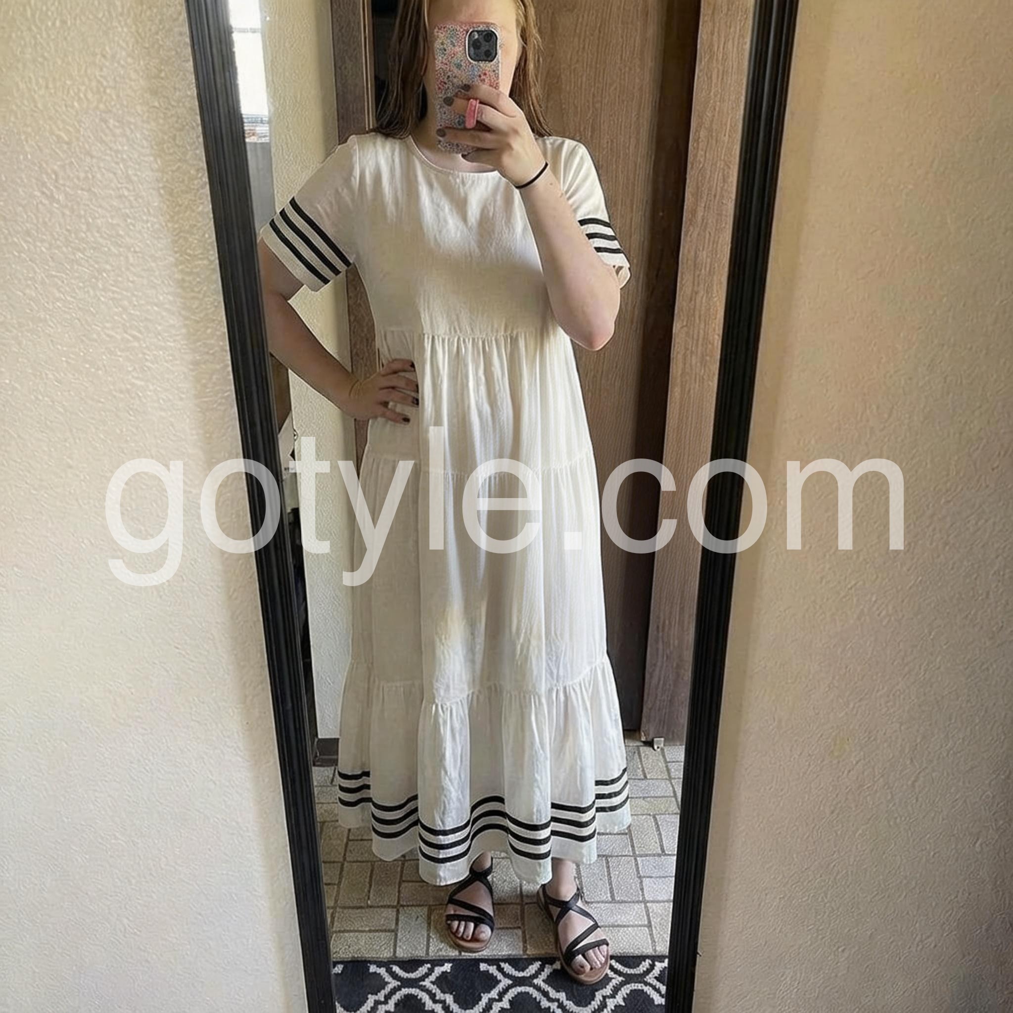 This Groovy Round Neck Short Sleeve Maxi Dress combines classic design with modern comfort. Featuring a flattering round neckline and short sleeves, it offers ease of movement and breathability. The maxi length provides versatile styling options, suitable for both casual and semi-formal occasions. Crafted to balance style and practicality, this dress is an essential addition to a refined wardrobe.