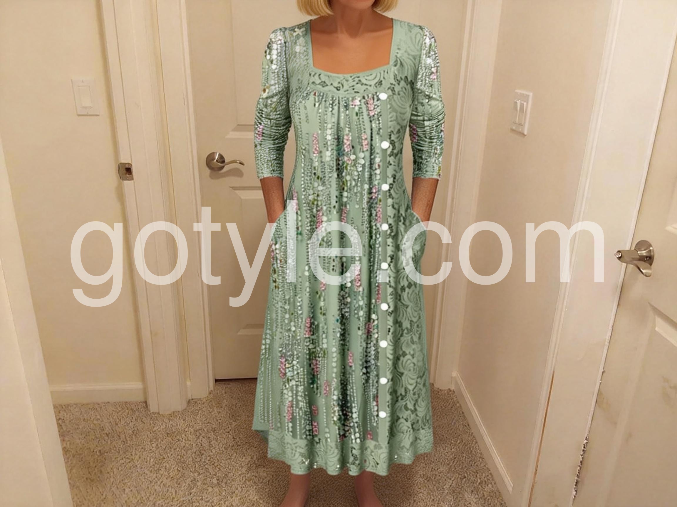 Style# 1372212Imagine effortless elegance that turns heads at every glance. This fresh green midi dress captures modern sophistication with its architectural square neckline that frames the collarbone beautifully, paired with graceful long sleeves for refined polish. The A-line silhouette flows with understated grace, while the luxurious rayon-elastane blend moves like silk against your skin—stretchy enough for all-day comfort, yet structured enough to maintain its impeccable shape. Practical side pockets add a touch of everyday luxury, while the midi length strikes the perfect balance between timeless and contemporary. Whether you're navigating the office, attending weekend brunches, or stepping into evening plans, this dress adapts seamlessly to your lifestyle. Machine washable for effortless care. Discover the dress that makes you feel as good as you look.