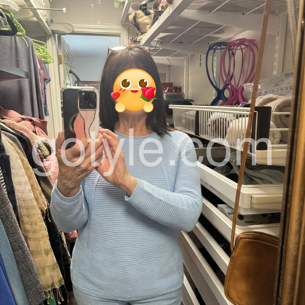 I’m obsessed with this baby blue sweater! The ribbed texture adds such a nice subtle detail and the relaxed fit is so comfortable for all-day wear. It’s not scratchy at all and washes well without losing its shape. I’ve worn it to work and weekend brunch and it’s become my most versatile piece.