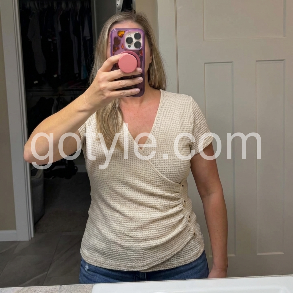 Enjoy the perfect blend of comfort and style with our Apricot Plain Short Sleeve Top. The soft fabric and short sleeves provide all-day comfort, while the neutral apricot color allows for versatile styling options. Made with quality materials, this top is a must-have staple for any wardrobe.