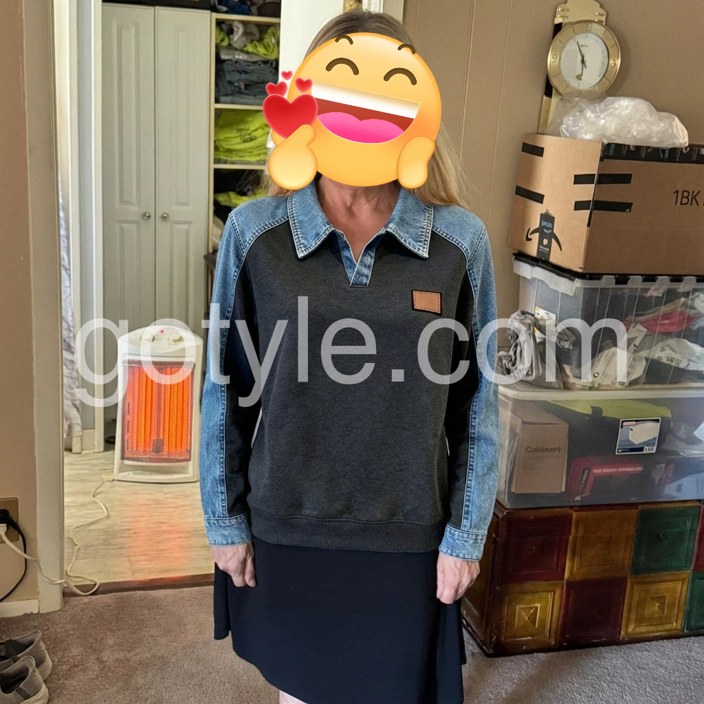 Elevate your denim collection with this striking color block long sleeve top. Crafted from quality denim, the contrasting panel design creates visual interest and modern appeal. The structured long sleeves offer versatility for layering or standalone wear, making it an essential piece for transitional seasons. Perfect for those who appreciate thoughtful design details and seek a standout addition to their everyday wardrobe. Style it with classic jeans for effortless sophistication or pair with neutral bottoms to let the color blocking take center stage.