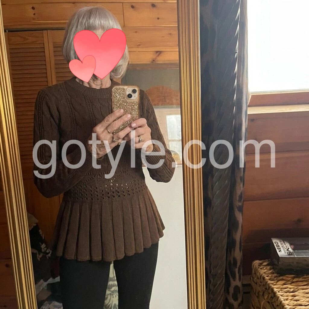 This is such a cute sweater. The cable knit design looks high quality and the flared hem makes it stand out in the best way. It’s warm and cozy, but still easy to wear with leggings or jeans. The sizing is accurate and it matches the listing photos perfectly. Highly recommend!