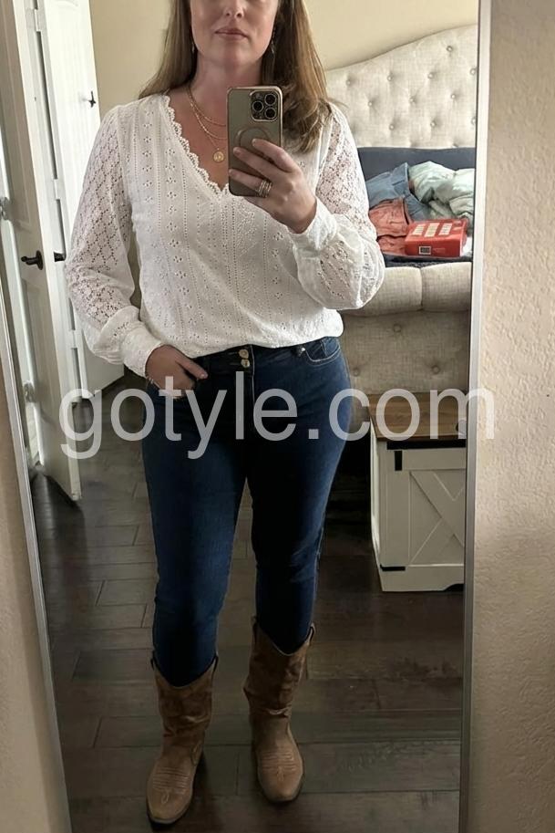 Experience comfort and style with our White Plain V-Neck Long Sleeve Top. Made with soft fabric, this top features a flattering V-neck design and long sleeves for a chic look. Perfect for any casual or dressy occasion, it's a versatile addition to your wardrobe.