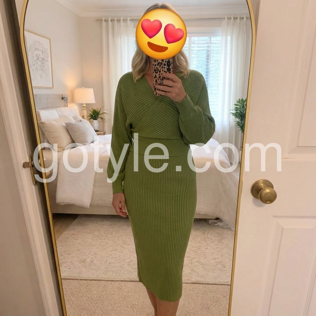 Green Long Sleeve Plain Midi Sweater Dress