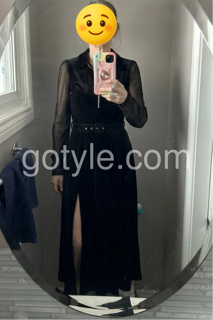 Black Velvet Zip Front Long Sleeve Maxi Dress
