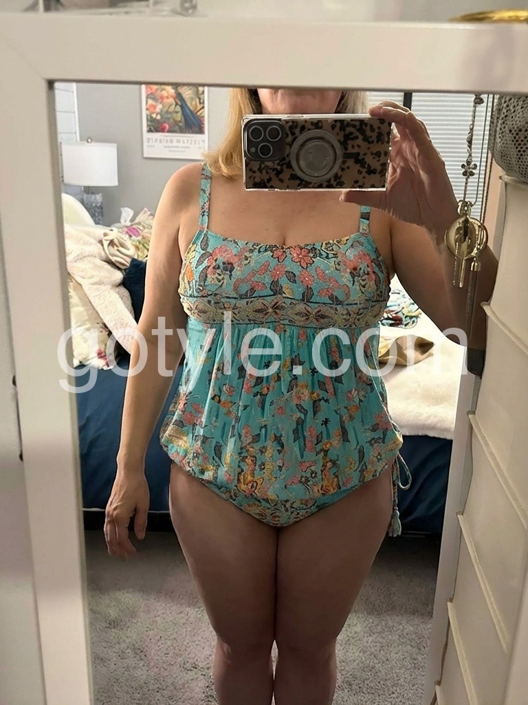 Time to get ready for summer with this flirty little number! This adorable sleeveless tankini features a feminine and chic pattern with total coverage, making it perfect for wearing to the beach, pool, pool party, and so much more. A retro-inspired floral print and bright blue aqua turquoise color make this tankini swimsuit your favorite go-to vacation swimsuit.