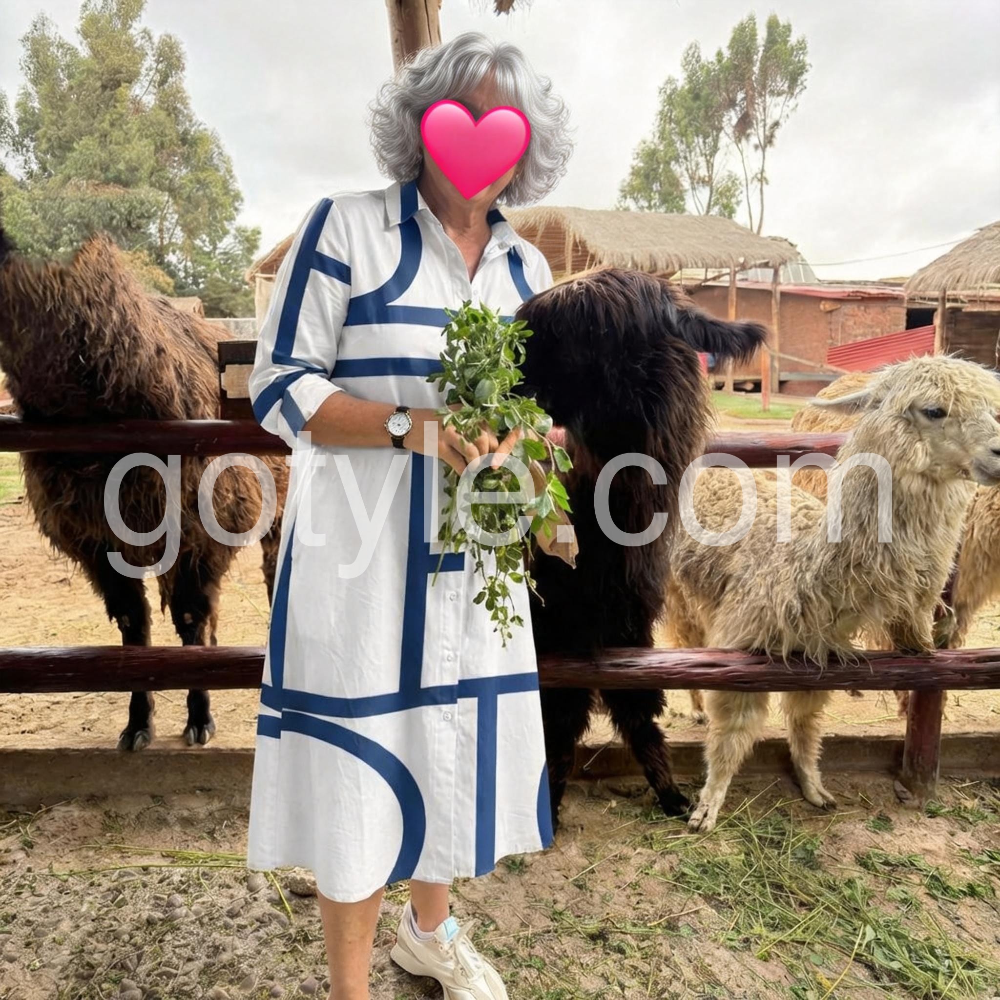 This trendy midi dress features a stylish striped print and a collared neckline, making it a versatile and fashionable addition to any wardrobe. With its eye-catching design and comfortable fit, this dress is perfect for any occasion and will keep you looking chic and on-trend. Upgrade your style with this must-have piece.